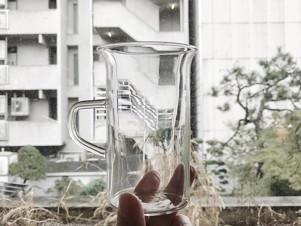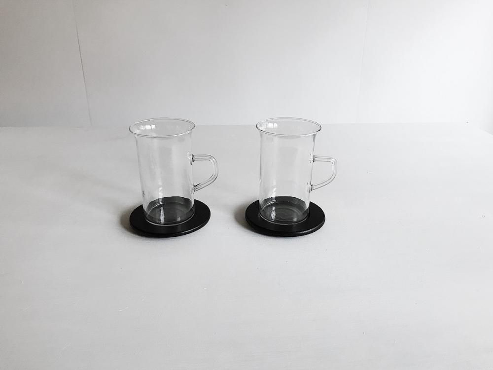 Sweden Boda Nova社の耐熱グラスマグです。キズもなく良い状態です。ウッド(ブラック)の専用コースター付きです。店頭にてご覧になりたい場合は事前にメール、もしくはお電話にてご連絡ください。(tramgs-108)