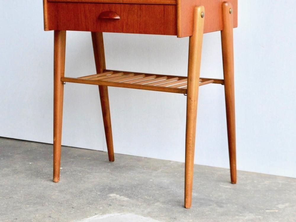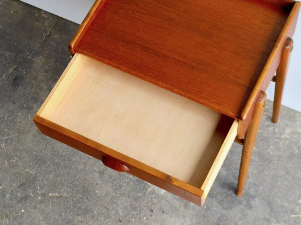 1960年代にスウェーデンで製造された、ビンテージの引き出しと棚付きのサイドテーブルです。素材はチーク材(脚はビーチ材)になります。古い物ですので細かな使用感がありますが、クリーニング、無添加オイル、蜜蝋ワックス仕上げ済みです。詳細画像でご確認ください。送料は全国一律1500円(税込1620円)です。(こちらの商品は10,000円以上送料無料の適用外の商品になります)店頭にてご覧になりたい場合は事前にメール、もしくはお電話にてご連絡ください。(tramft-0039)