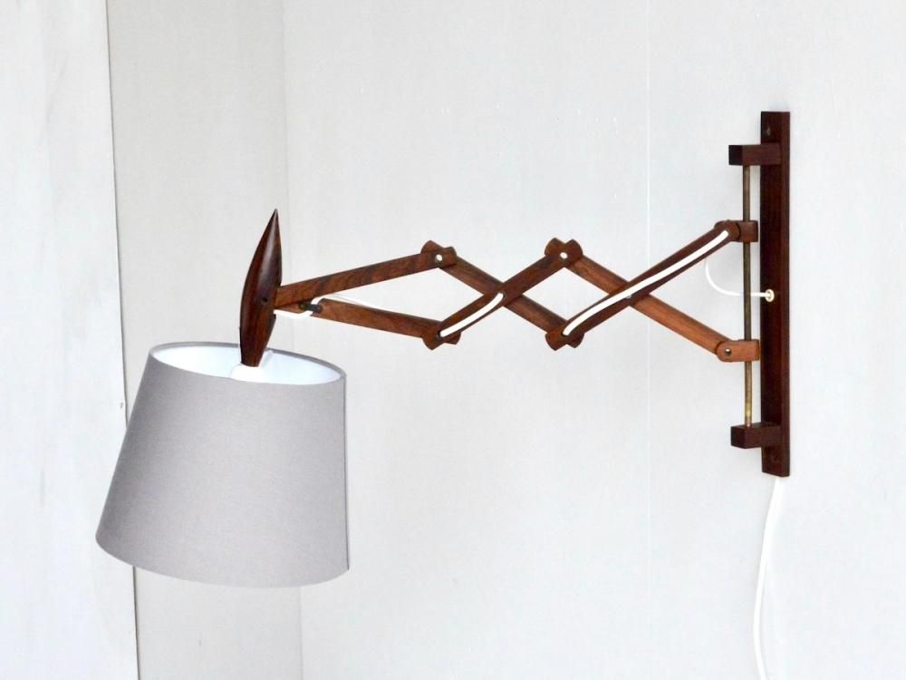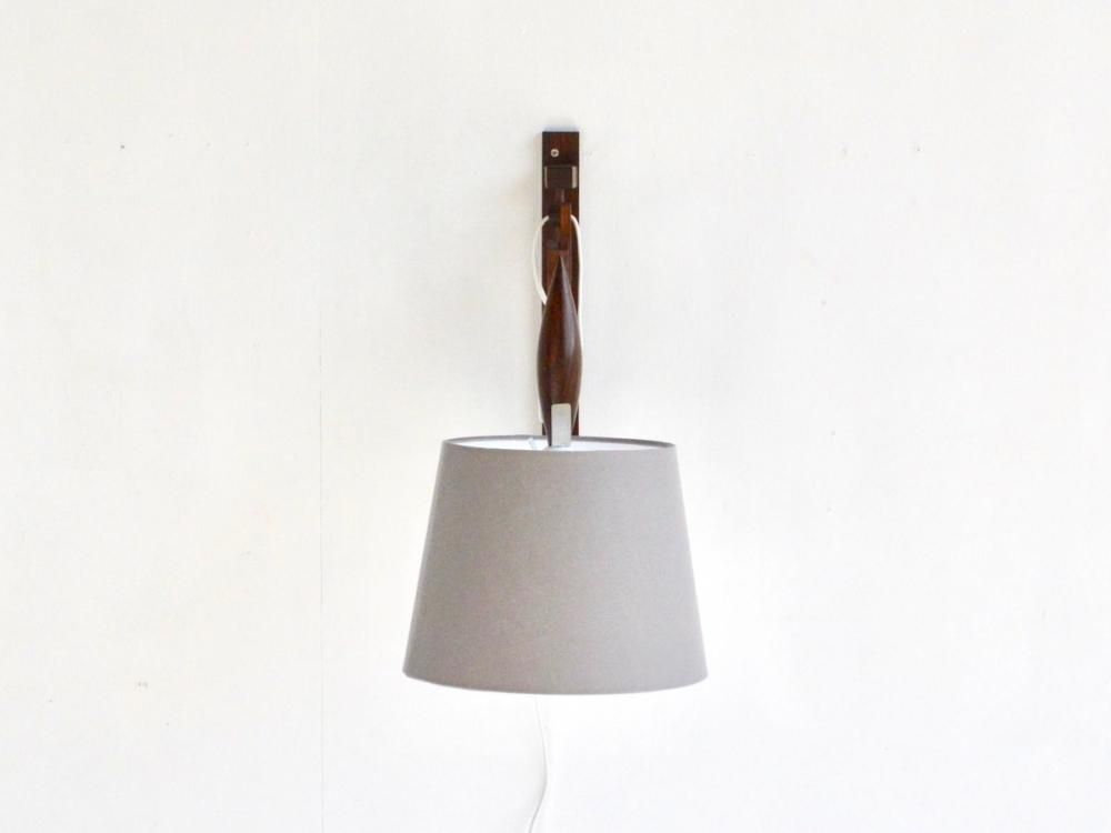 ミッドセンチュリー期にデンマークで製造され壁掛け用ランプです。左右に動かせて、蛇腹式で伸び縮み可能です。また下向きでも上むきでも取り付け可能です。本体の素材は希少なローズウッドです。傘は新しいものになります。(傘の色は白色も選択可能です)コード、スイッチ、ソケットは新しいものに交換済みです。LED電球も使用可能です(ソケットのサイズはE26)。コードの長さは230cmです。傘のサイズはD250mm,H190mmです。送料は無料になります(tramlw-0010)