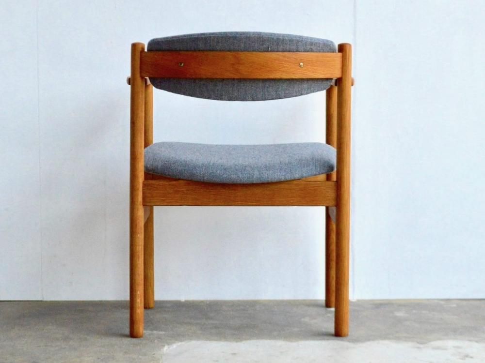 Jorgen Baekmarkのデザインにより、デンマークのFDB Mobler社で製造されたビンテージのアームチェア-です(1965年1月1日製造の刻印あり)。フレームの素材は無垢のオーク材になります。座面と背もたれは新たにウレタンを入れ替えてグレーのウールファブリックに張り替え済みです。フレームは古い物ですので細かな使用感がありますが、サンディング後にクリーニング、無添加オイル、蜜蝋ワックス仕上げ済みです。詳細画像でご確認ください。送料は全国一律2800円(税込3080円)です(沖縄、離島は別途送料がかかります)(こちらの商品は10,000円以上送料無料の適用外の商品になります)。店頭にてご覧になりたい場合は事前にメール、もしくはお電話にてご連絡ください。(tramfc-0133)