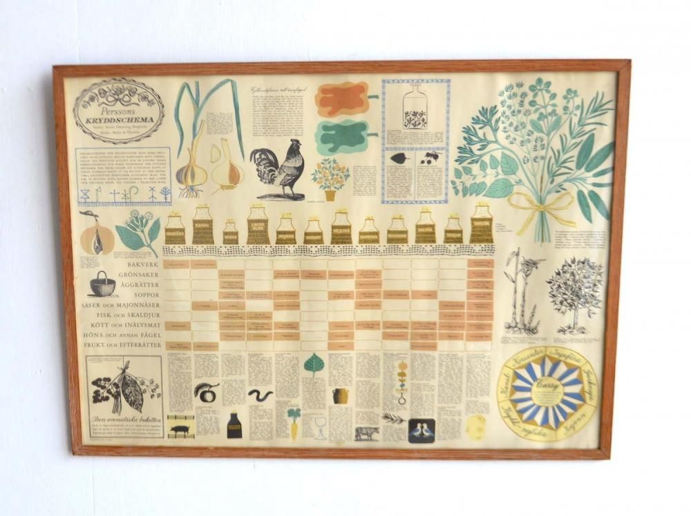 1956年に制作されたSIGNE PERSSON-MELINのスパイス入れをモチーフにしたポスターです。デザインは夫のJOHN MELINとANDERS OSTERLINによるものです。古いものですのでわずかな焼け、当時のオリジナルのフレームの為、少しのダメージは有りますがガラスに割れなどはなく良い状態です。送料は無料になります。店頭にてご覧になりたい場合は事前にメール、もしくはお電話にてご連絡ください。(tramoi0002)