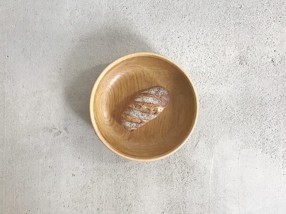 Swedenで作られた古いオーク材のボウルです。無垢の木をくり抜いて作られています。縁の木材はメープルになります。店頭にてご覧になりたい場合は事前にメール、もしくはお電話にてご連絡ください。(tramkw-141)