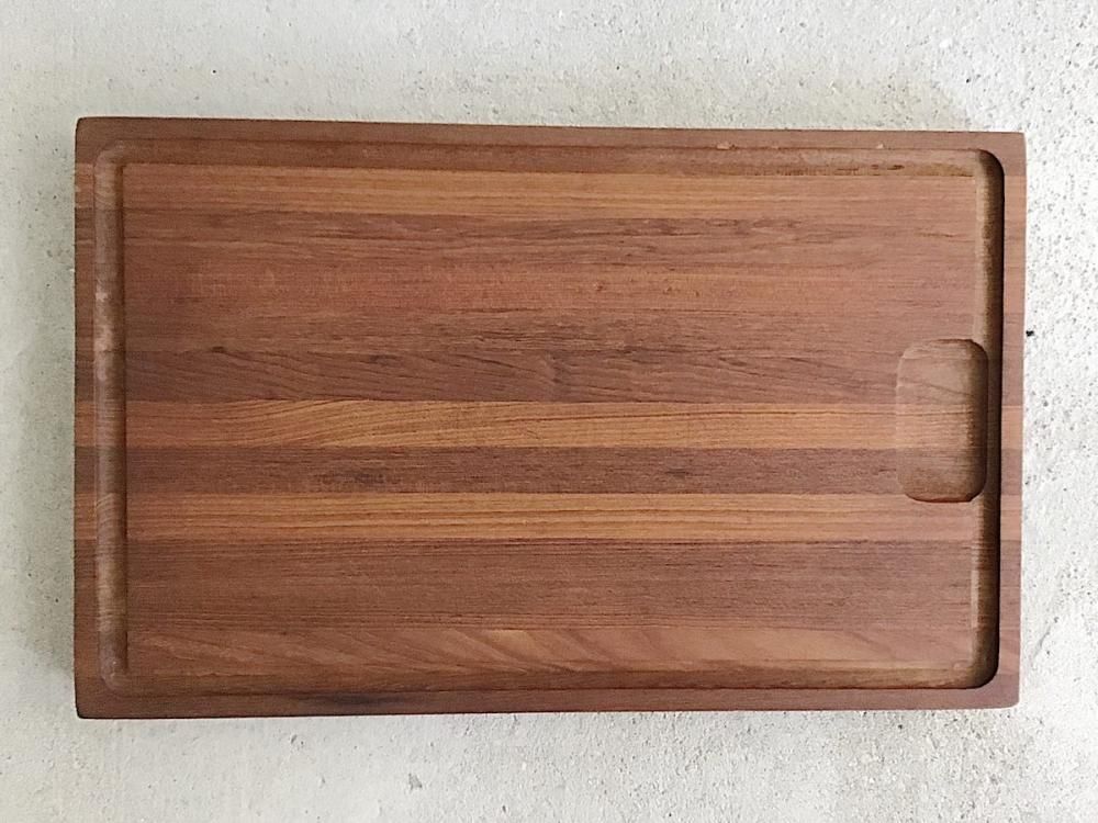 Denmarkで製造された古いチーク材のカッティングボードです。多少の使用感はありますが良い状態です。店頭にてご覧になりたい場合は事前にメール、もしくはお電話にてご連絡ください。(tramkw-159)