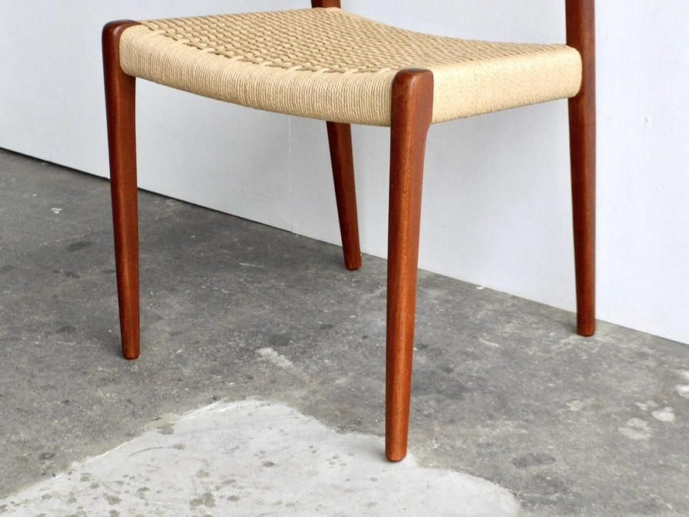 1951年にNiels Otto Moller のデザインによりデンマークのJ.L Moller Mobelfabrik社で製造されたペーパーコード張りのチェアです。フレームはチーク材です。サンディング、クリーニング後に無添加オイル、蜜蝋ワックスで仕上げ済みです。座面は新たにデンマーク製のペーパーコードにて張り替え済みです。送料は全国一律2,800円(税込3080円)です。(沖縄、離島は別途送料がかかります)(こちらの商品は10,000円以上送料無料の適用外の商品になります)。店頭にてご覧になりたい場合は事前にメール、もしくはお電話にてご連絡ください。(tramfc-0187)