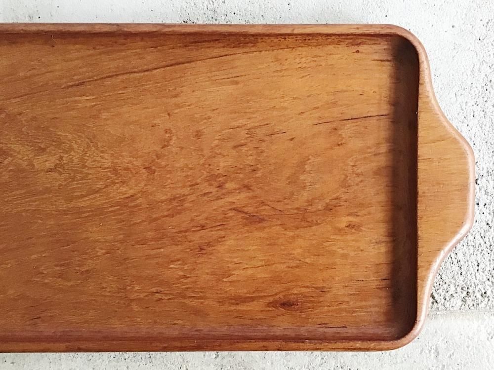 SwedenのKarl Holmberg社で製造された古いチークトレイです。無垢のチーク材を削り出して作られています。少しの使用感はありますが良好なビンテージコンディションです。店頭にてご覧になりたい場合は事前にメール、もしくはお電話にてご連絡ください。(tramkw-185)