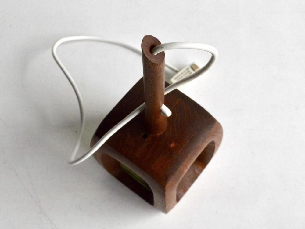 ミッドセンチュリー期にスウェーデンで製造されたペンダントランプです。上質なチーク材の本体に薄いグリーンのガラスの組み合わせです。傷も少なく良い状態です。コード、ソケット(電球口金はE26に交換しております)は新しいものに交換済みです。(こちらの商品にはLED電球をお付けいたします)。コードの長さの変更も無料で可能です。(通常は1mです)。送料は無料になります。店頭にてご覧になりたい場合は事前にメール、もしくはお電話にてご連絡ください。(tramlp-0162)