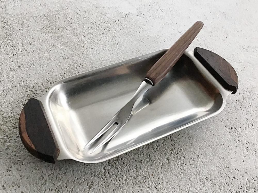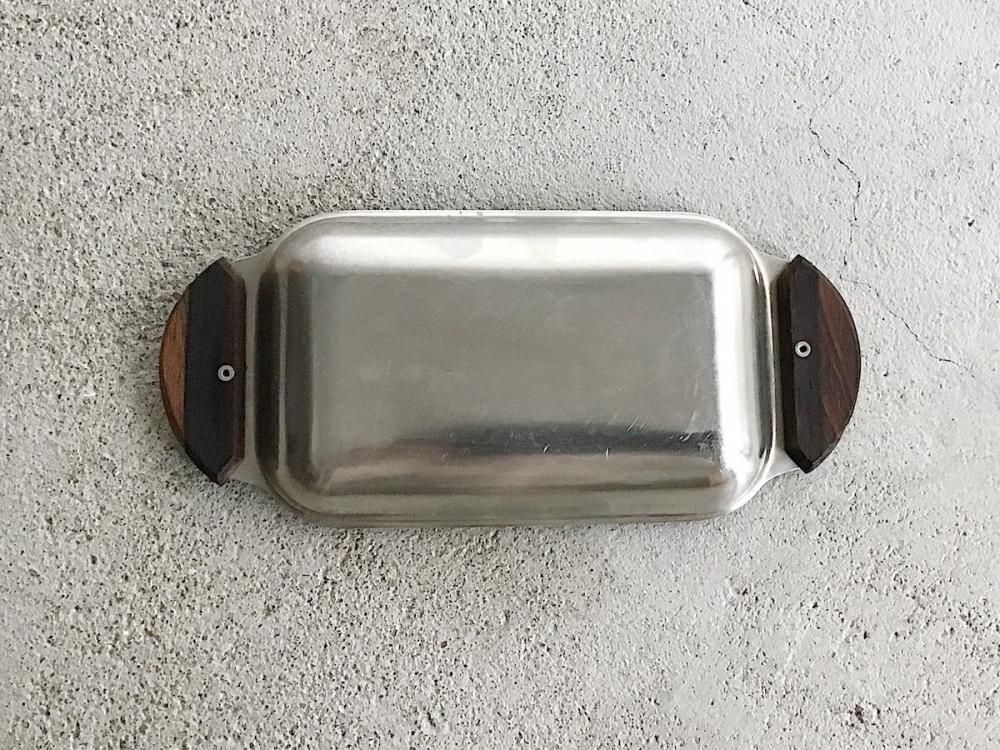 デンマークの古いスナックトレイです。素材はステンレス。取手はチーク材。トレイとして使ったりうつわとしても使えます。古いものですので多少の使用感はありますが比較的良い状態です。店頭にてご覧になりたい場合は事前にメール、もしくはお電話にてご連絡ください。(tramko-131)