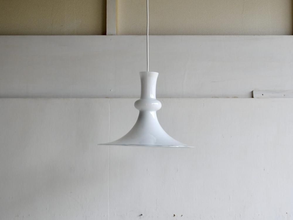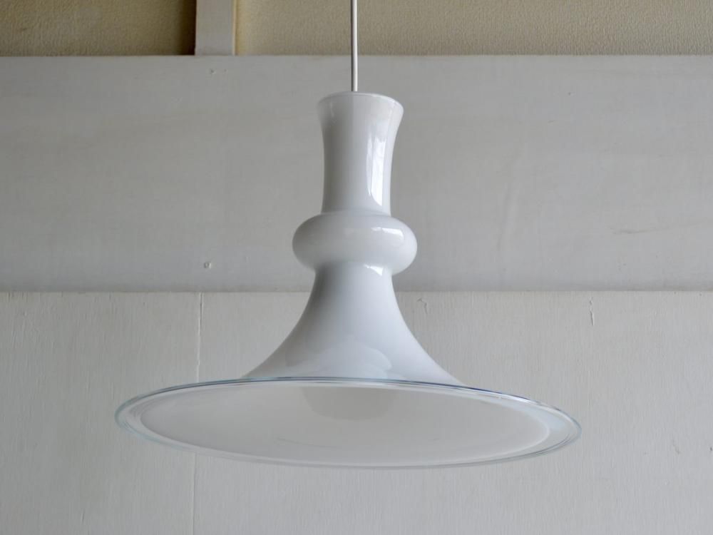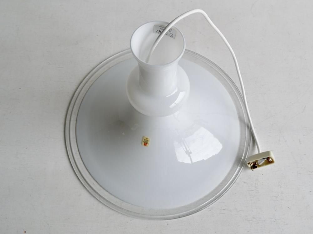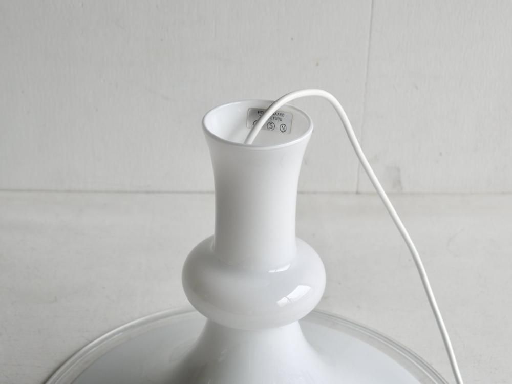 1978年にMichael Bangによりデザインされ、デンマークのHolmegaard社で製造されたハンドメイドガラスのペンダントランプです。割れ欠けのない良い状態です。コンセント、コード、(電球口金はE26)は新しいものに交換済みです。LED電球をお付け致しますのでそのまま使用可能です。コードの長さの変更も無料で可能です。(通常は58cmです)店頭にてご覧になりたい場合は事前にメール、もしくはお電話にてご連絡ください。(tramlp-0375)