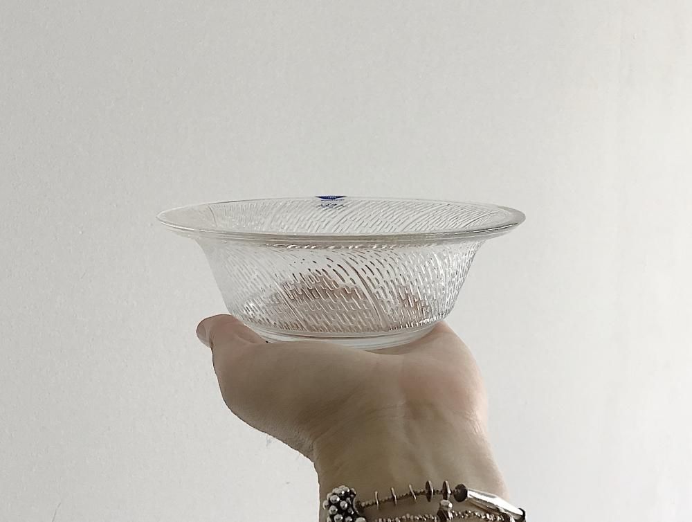 1970年代にFinland のNuutajarvi社で製造されたガラスのボウルです。古いものですので多少の使用感はありますが割れ欠けなく良い状態です。店頭にてご覧になりたい場合は事前にメール、もしくはお電話にてご連絡ください。(tramgf-0118)