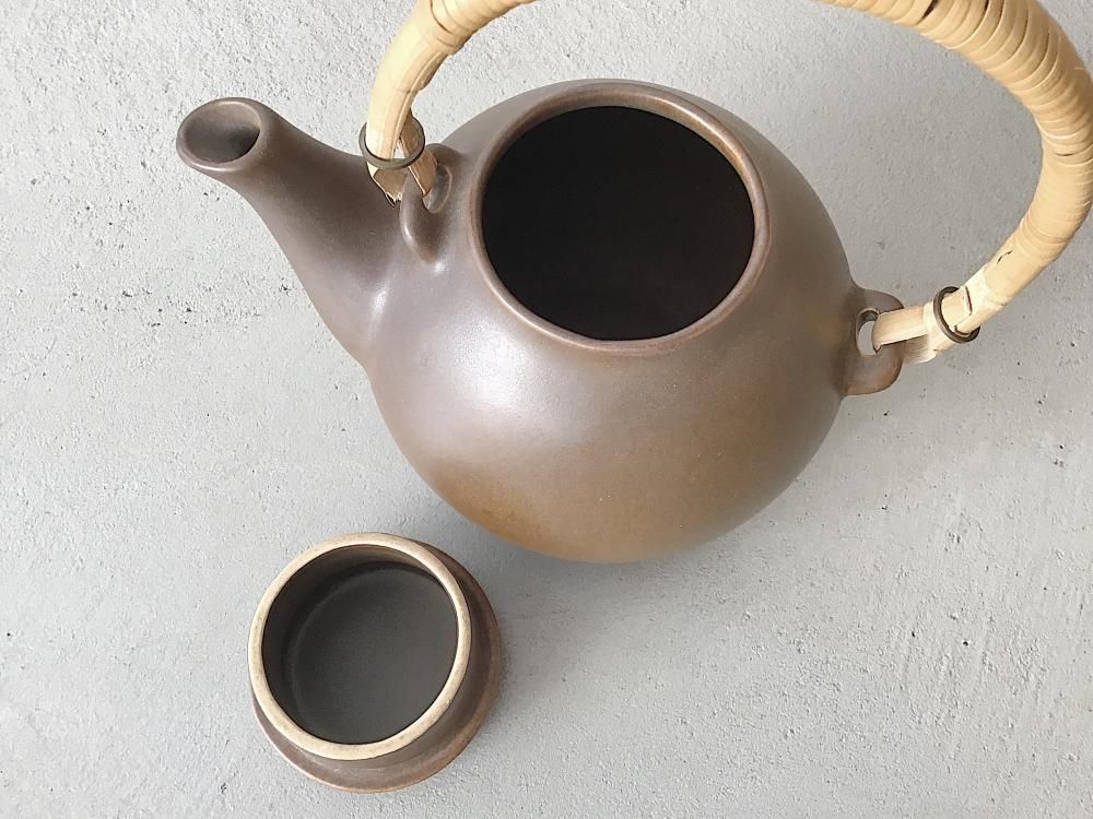 FinlandのARABIA社で製造されたUlla ProcopeデザインによるGAシリーズのヴィンテージティーポットです。持手の藤の部分が少しかけています。8枚目の画像をご確認ください。古いものですので多少の使用感はありますが良いコンディションです。店頭にてご覧になりたい場合は事前にメール、もしくはお電話にてご連絡ください。(tramy-0001)