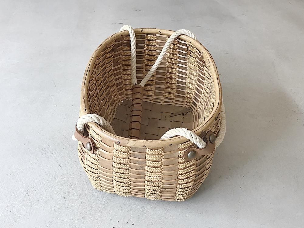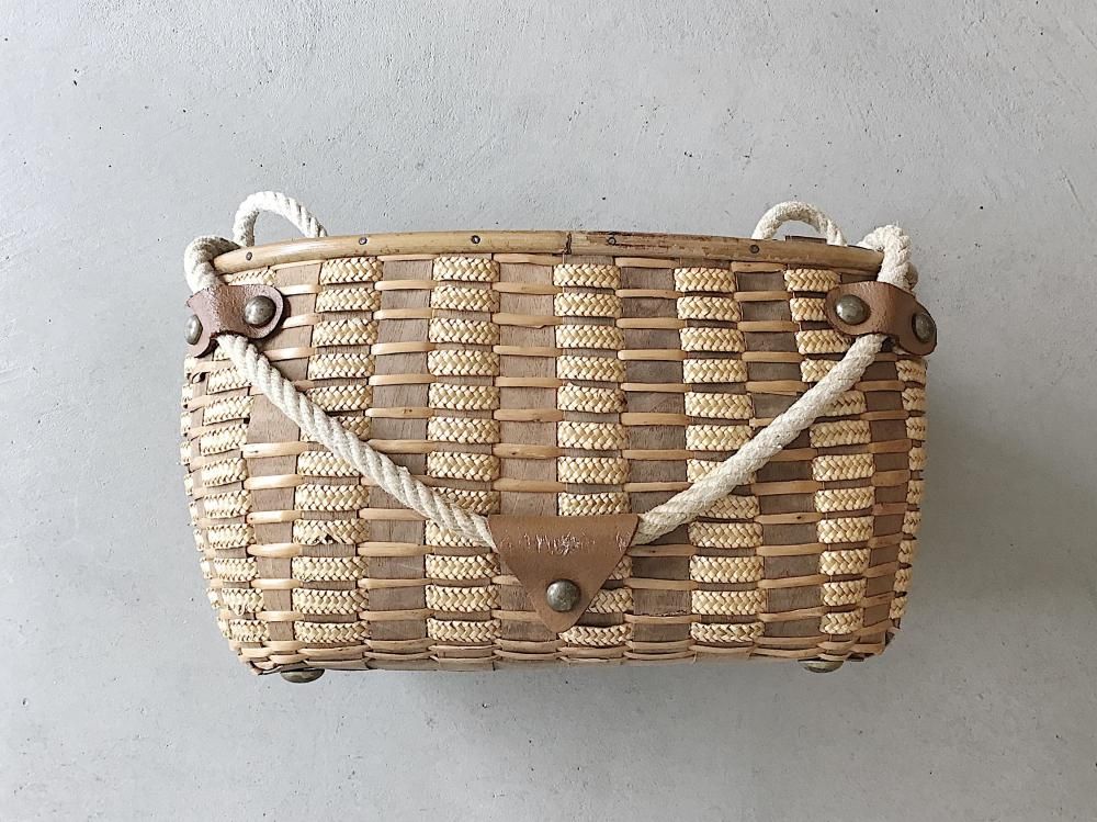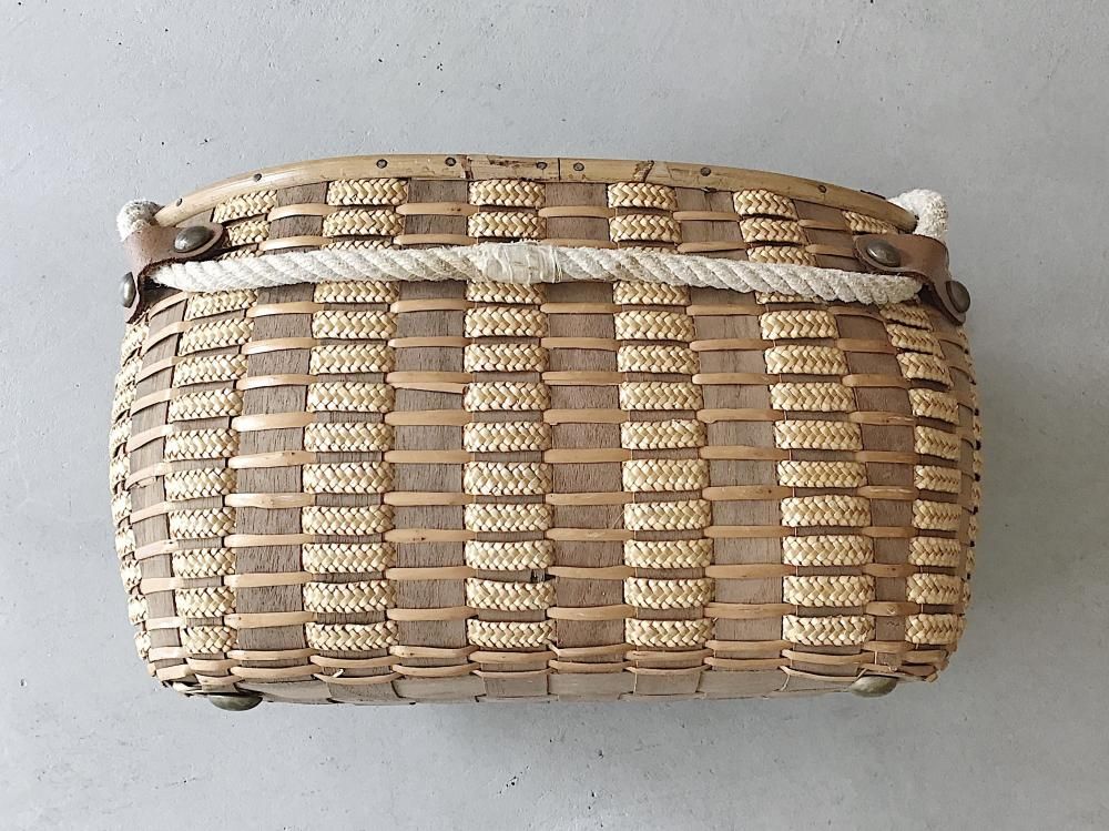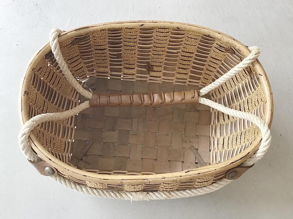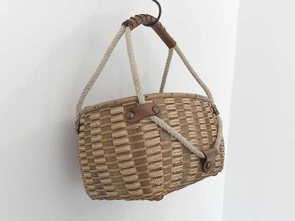 Swedenの古いバスケットです。持ち手は紐と本革で作られています。留め具は真鍮です。古いものですので多少の使用感はありますが良い状態です。店頭にてご覧になりたい場合は事前にメール、もしくはお電話にてご連絡ください。(tramzw-0384)