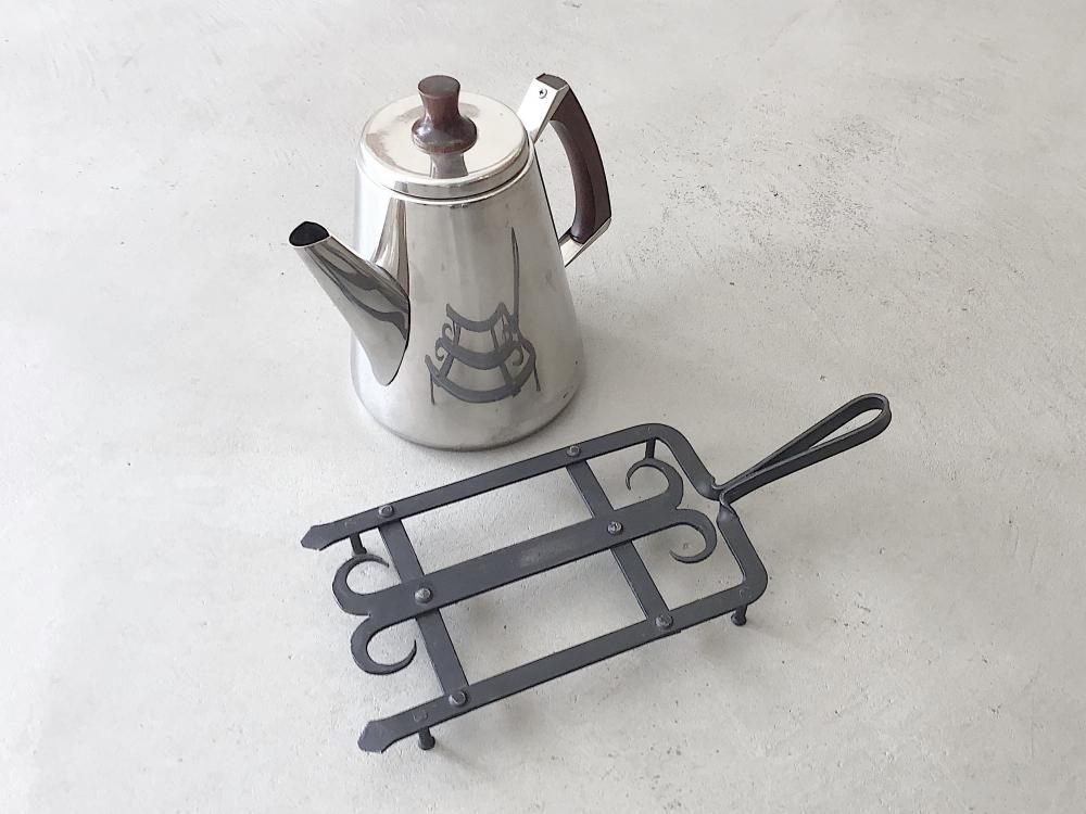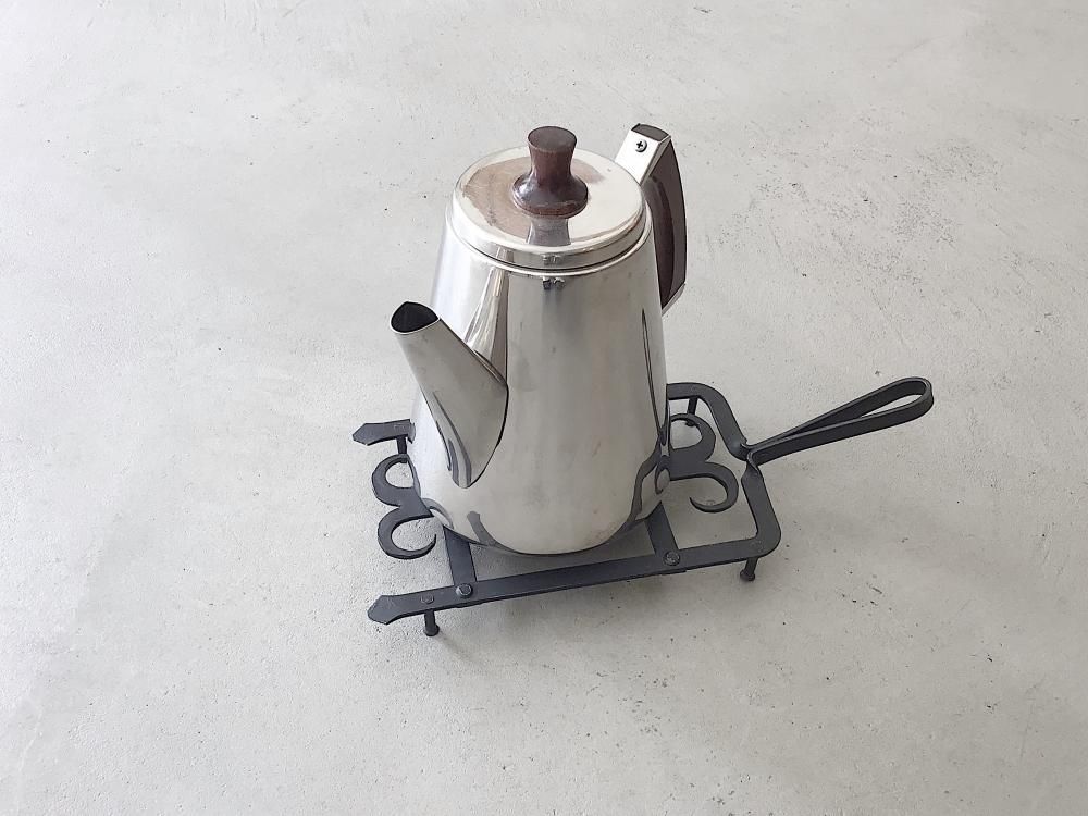 Swedenで作られた古い鉄の鍋敷きです。古いものですので多少の使用感はありますが良いコンディションです。店頭にてご覧になりたい場合は事前にメール、もしくはお電話にてご連絡ください。(tramko-0177)