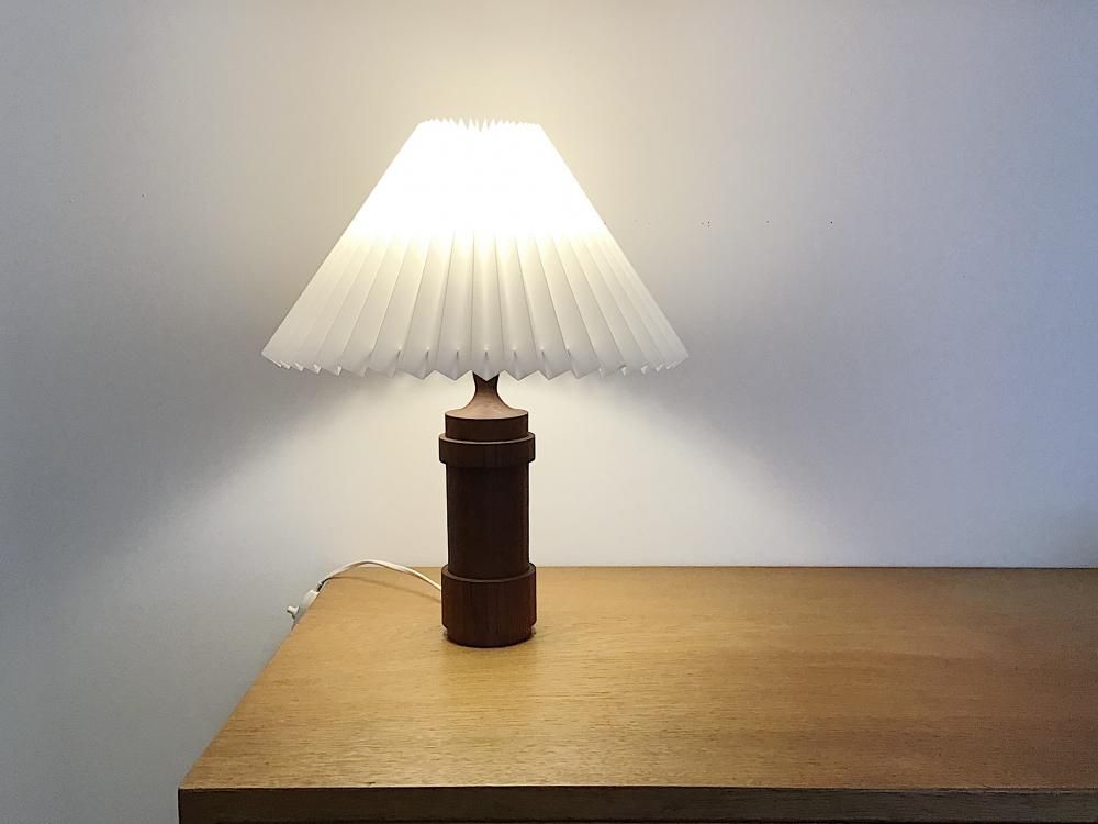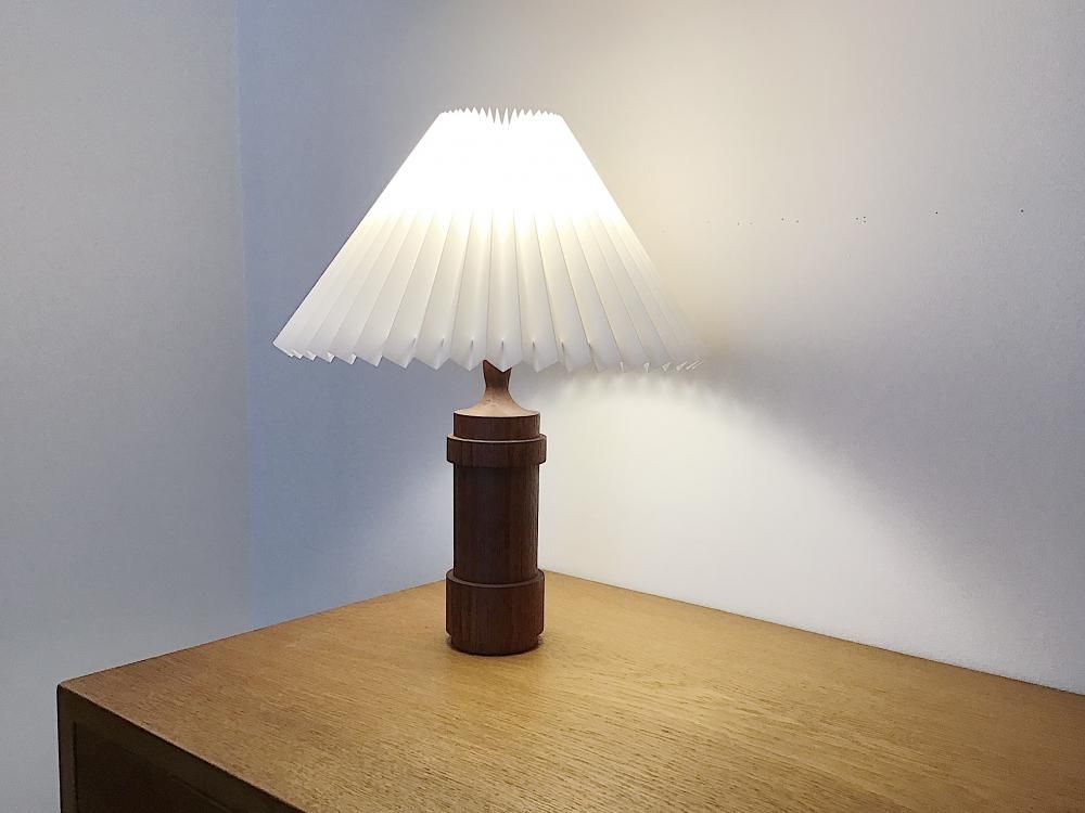 1900年代ミッドセンチュリー期にスウェーデンで製造されたデスクランプです。本体の素材はチーク材です。シェードはデンマークの高級ランプシェードメイカーであるKS Lighting groupでハンドメイドで製造された新品味用品になります。。(シェードのサイズはD330mm,H180mm)。古いものですので僅かな傷など使用感は有りますが、コンセント、は新しいものに交換済みです。(ソケットの口金はE26です)LED電球をお付け致しますのでそのまま使用可能です。コードの長さは159.5cmです。送料は無料です。店頭にてご覧になりたい場合は事前にメール、もしくはお電話にてご連絡ください。(tramld-0291)