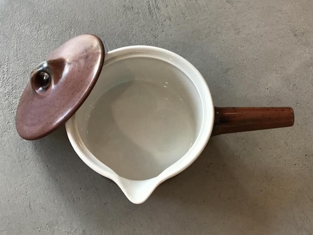 1970年代にSwedenのGustavsberg社で製造されたStig LindbergデザインによるCoqシリーズの耐熱の片手鍋です。古いものですので多少の使用感はありますが割れなどなく良い状態です。店頭にてご覧になりたい場合は事前にメール、もしくはお電話にてご連絡ください。(tramps-0238)