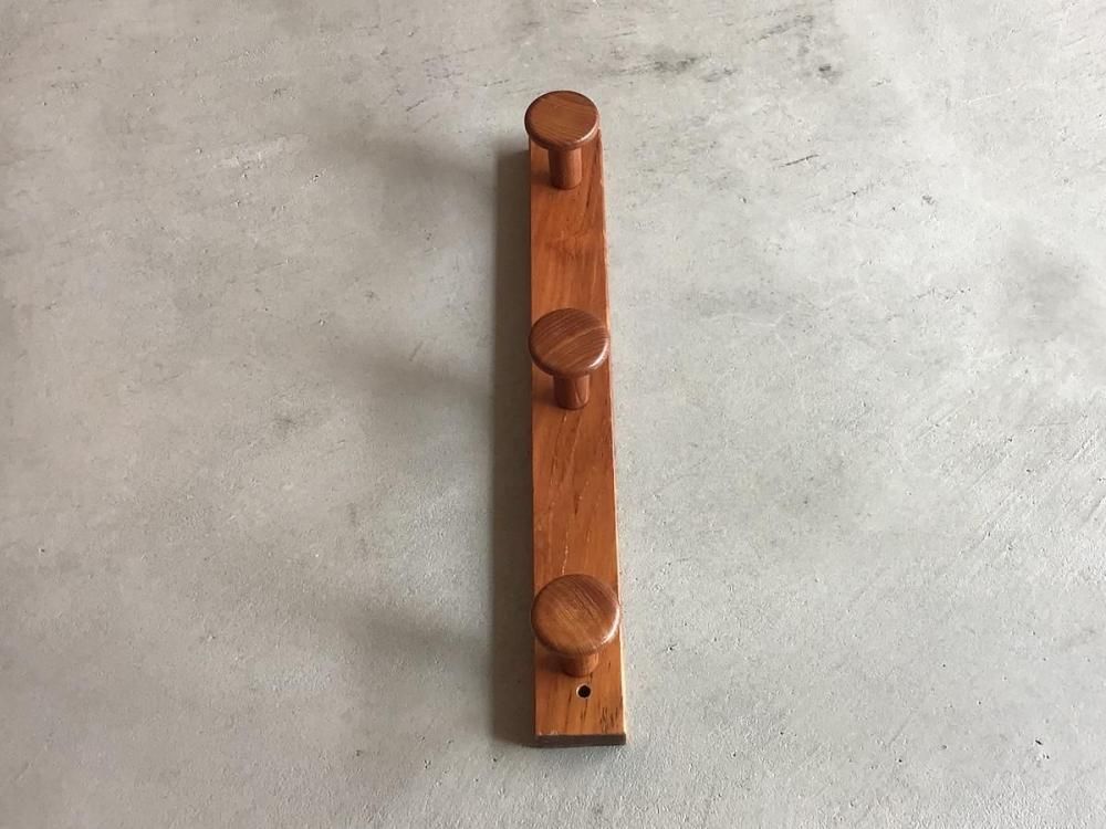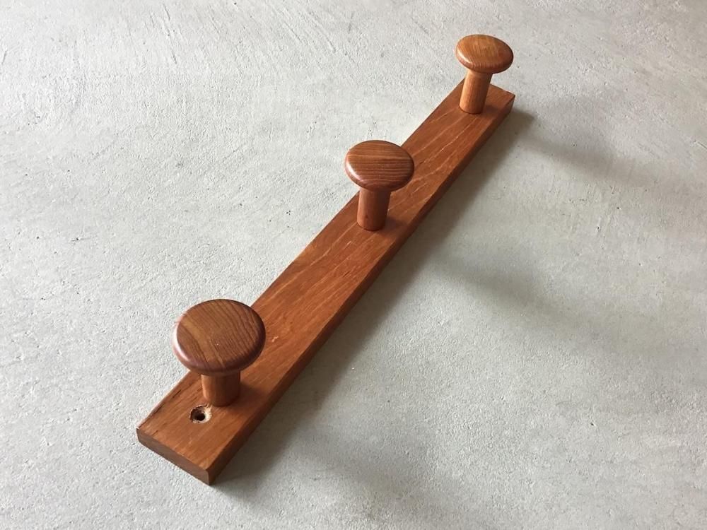 Swedenで製造された古いウォールフックです。素材はチーク材になります。古い物ですので細かな使用感がありますが良い状態です。クリーニング、無添加オイル、蜜蝋ワックス仕上げ済みです。詳細画像でご確認ください。送料は無料です。店頭にてご覧になりたい場合は事前にメール、もしくはお電話にてご連絡ください。(tramfo-0193)
