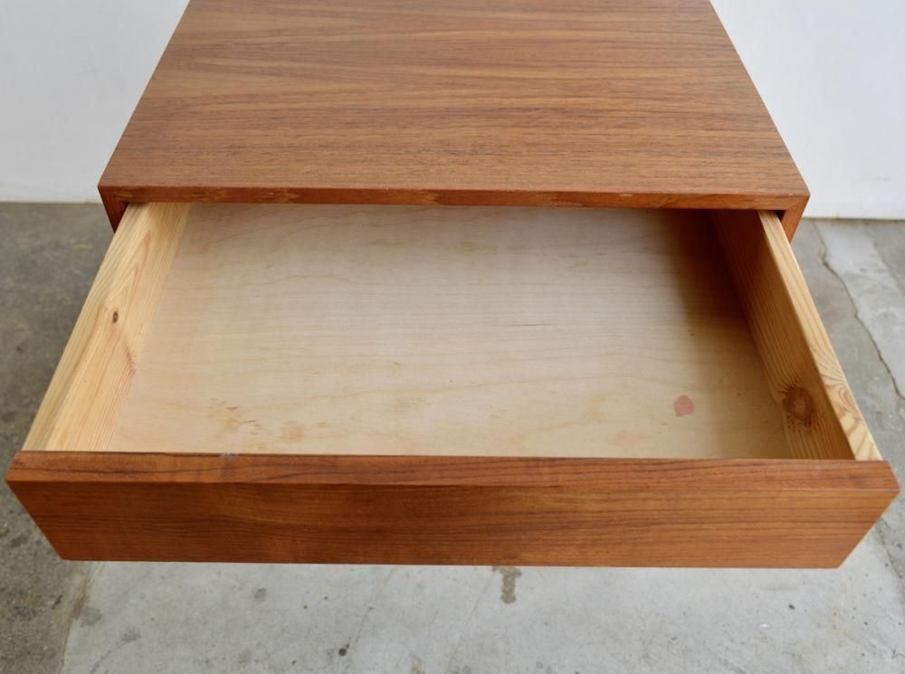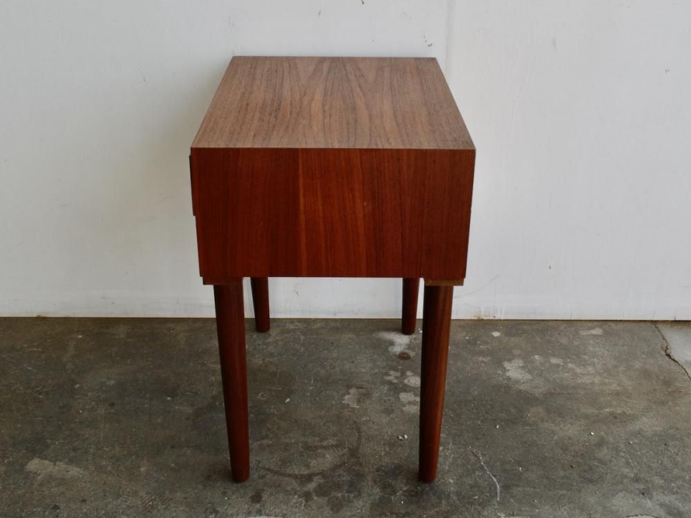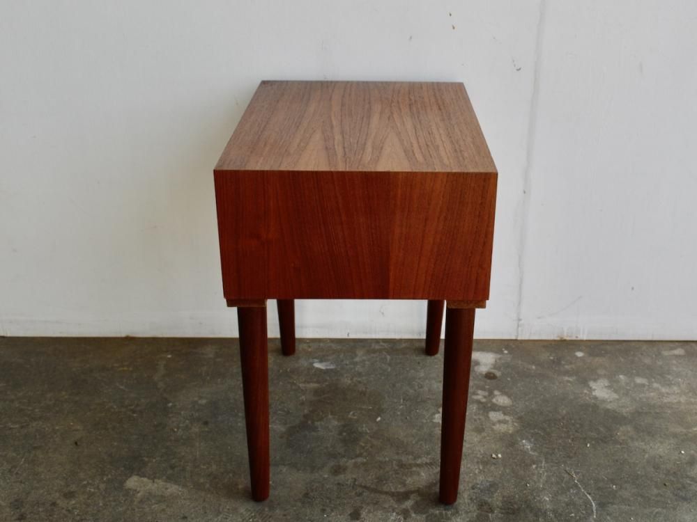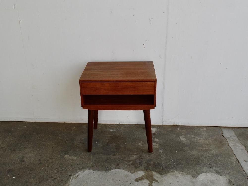 1900年代ミッドセンチュリー期にデンマークで製造された、ビンテージの引き出しと棚付きのサイドテーブルです(引き出しの内寸はW390mm,D240mm,H34mmです。)素材はチーク材になります。古い物ですので細かな使用感がありますが、クリーニング、無添加オイル、蜜蝋ワックス仕上げ済みです。詳細画像でご確認ください。送料は無料です。捻じ込み式の足は外した状態での発送になります。店頭にてご覧になりたい場合は事前にメール、もしくはお電話にてご連絡ください。(tramft-0328)