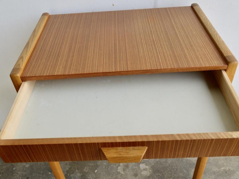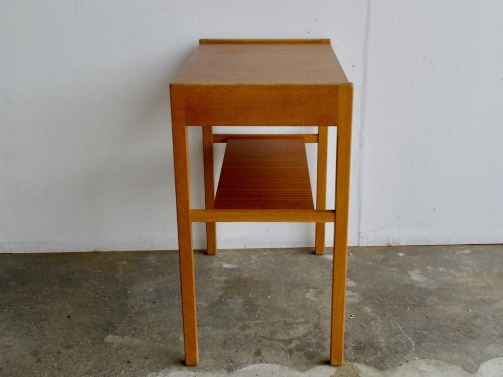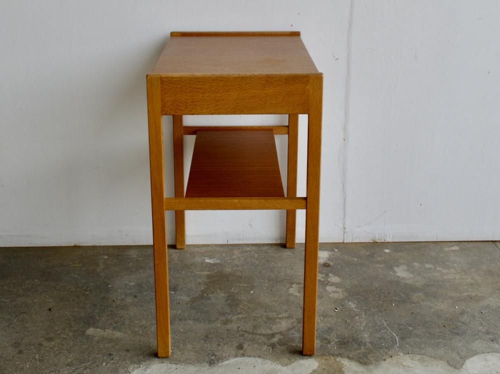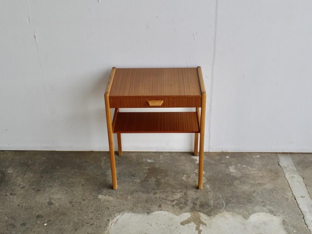 1900年代ミッドセンチュリー期にスウェーデンで製造された、ビンテージの引き出しと棚付きのサイドテーブルです(引き出しの内寸はW390mm,D240mm,H34mmです。)素材はチーク材(脚はオーク材)になります。古い物ですので細かな使用感がありますが、クリーニング、無添加オイル、蜜蝋ワックス仕上げ済みです。詳細画像でご確認ください。送料は無料です。(ヤマト運輸家財便での発送になります。)店頭にてご覧になりたい場合は事前にメール、もしくはお電話にてご連絡ください。(tramft-0329)