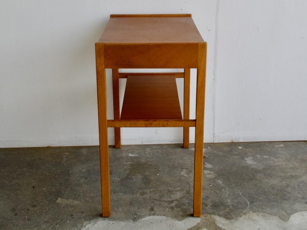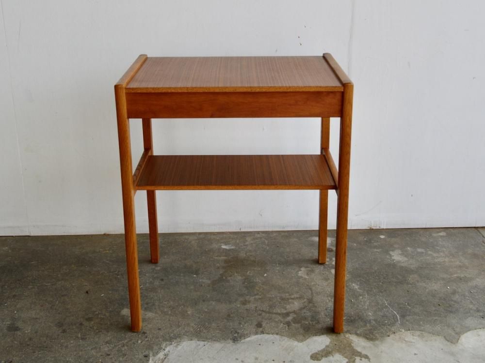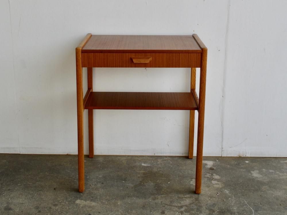 1900年代ミッドセンチュリー期にスウェーデンで製造された、ビンテージの引き出しと棚付きのサイドテーブルです(引き出しの内寸はW390mm,D240mm,H34mmです。)素材はチーク材(脚はオーク材)になります。古い物ですので細かな使用感がありますが、クリーニング、無添加オイル、蜜蝋ワックス仕上げ済みです。詳細画像でご確認ください。送料は無料です。(ヤマト運輸家財便での発送になります。)店頭にてご覧になりたい場合は事前にメール、もしくはお電話にてご連絡ください。(tramft-0330)