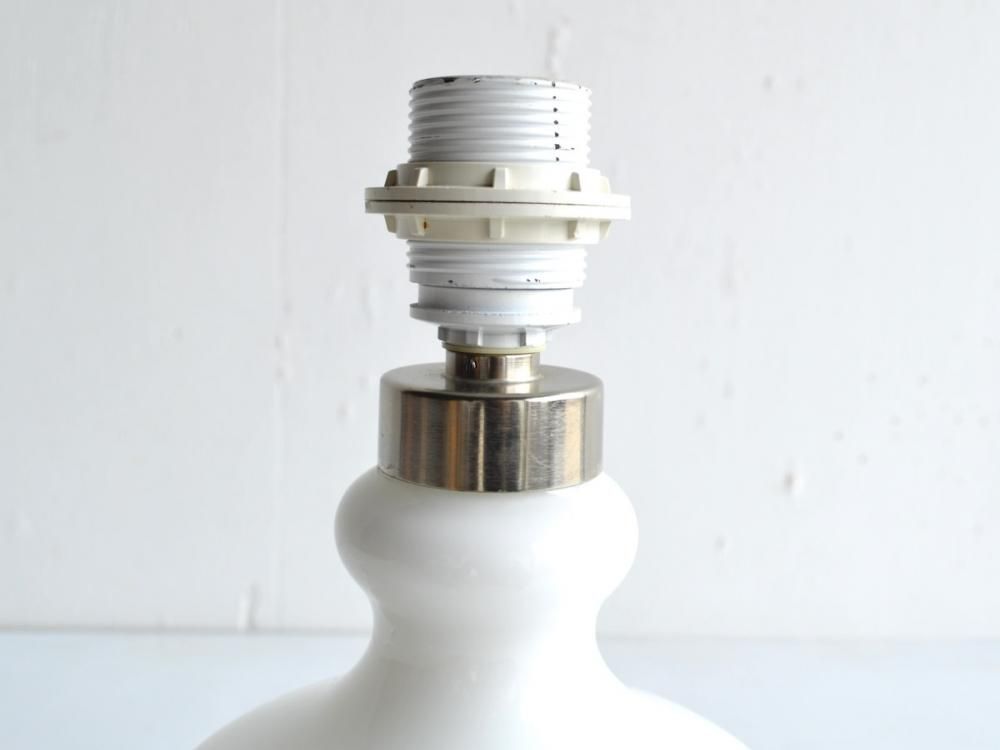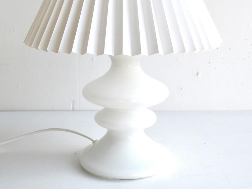 1900年代ミッドセンチュリー期にPer LutkenのデザインによりデンマークのHolmegaard社で製造されたガラスのデスクランプ(Marry Opal)です。(ハンドメイドのガラス)。割れ欠けのない良い状態です。コンセント(電球口金はE26)は新しいものに交換済みです。シェードはデンマークの高級ランプシェードメイカーであるKS Lighting groupでハンドメイドで製造された新品味用品になります。(シェードのサイズはD340mm,H205mm)。LED電球も使用可能です。(コードの長さは195cmです。送料は無料です。店頭にてご覧になりたい場合は事前にメール、もしくはお電話にてご連絡ください。(tramld-0296)