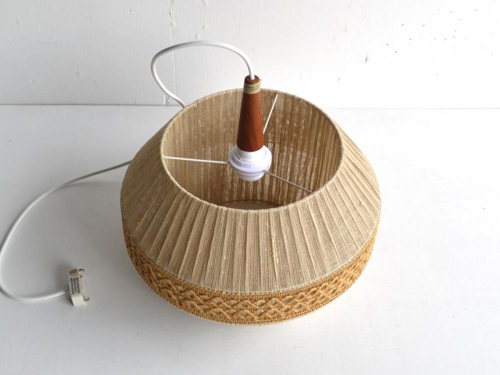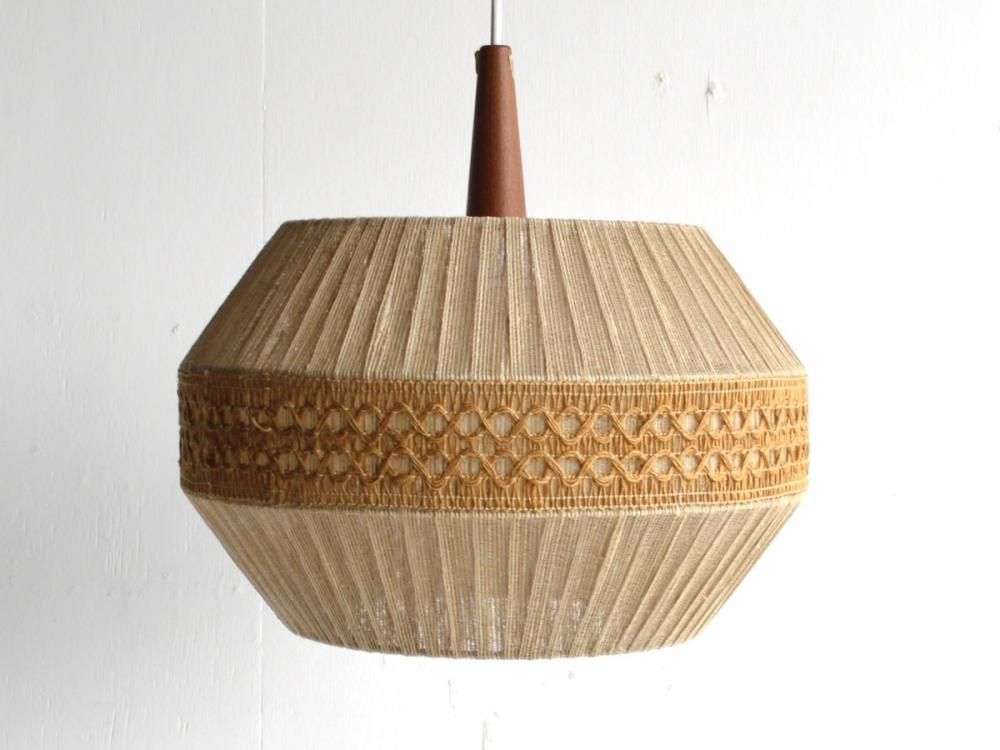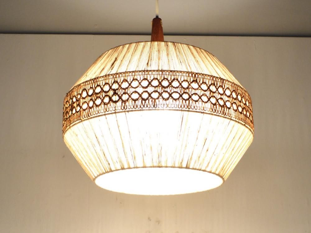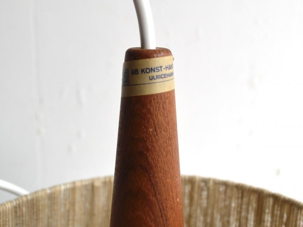 1900年代ミッドセンチュリー期にスウェーデンで製造されたペンダントランプです。本体の木製部分はチーク材で傘の部分はリネンの糸で作られたビンテージです。コンセントやコードは新しいものに交換済みです(ソケットの口金はE26です)。LED電球をお付け致しますのでそのまま使用可能です。コードの長さの変更も無料で可能です。本体と傘は分けた状態での発送になります。(通常は1mです)送料は無料になります(tramlp-0502)